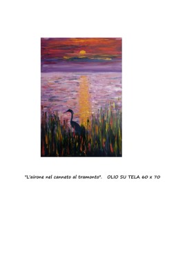 "L'airone nel canneto al tramonto". OLIO SU TELA 60 x 70